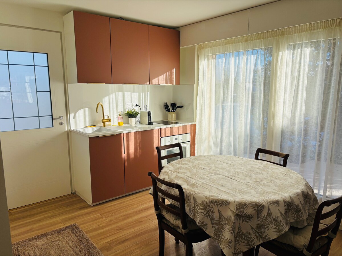 Vino și bucură-te de o experiență unică în cabana noastră din orașul Annemasse. Apartamentul este la ultimul etaj, oferindu-ți o vedere neobstrucționată cu munții din jur. După o zi de drumeții, schi sau muncă, relaxează-te la șemineu și relaxează-te în cada cu hidromasaj privată. Situat la 5 minute de Mont-Salève, la 20 de minute de Geneva și la 50 de minute de primele stațiuni de schi.