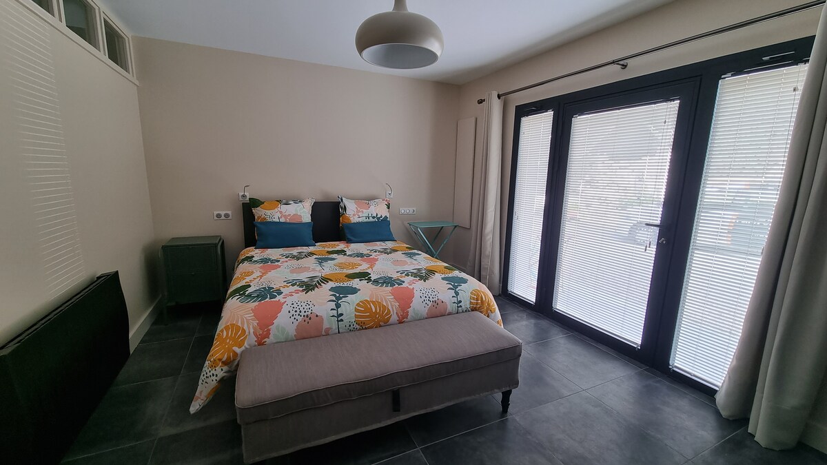 Oferim o pensiune cu mic dejun de aproximativ 15 m² La dispoziția ta: 1 pat 160 x 200 cm, spațiu de depozitare , duș privat cu duș italian, mobilier, 2 chiuvete și toaletă separată, toate la primul etaj al cabanei noastre. (Nu se iau masa în cameră.) Un ceainic electric și o tavă de bun venit sunt disponibile în camera ta. Mic dejun gourmet inclus Mașină esențială.