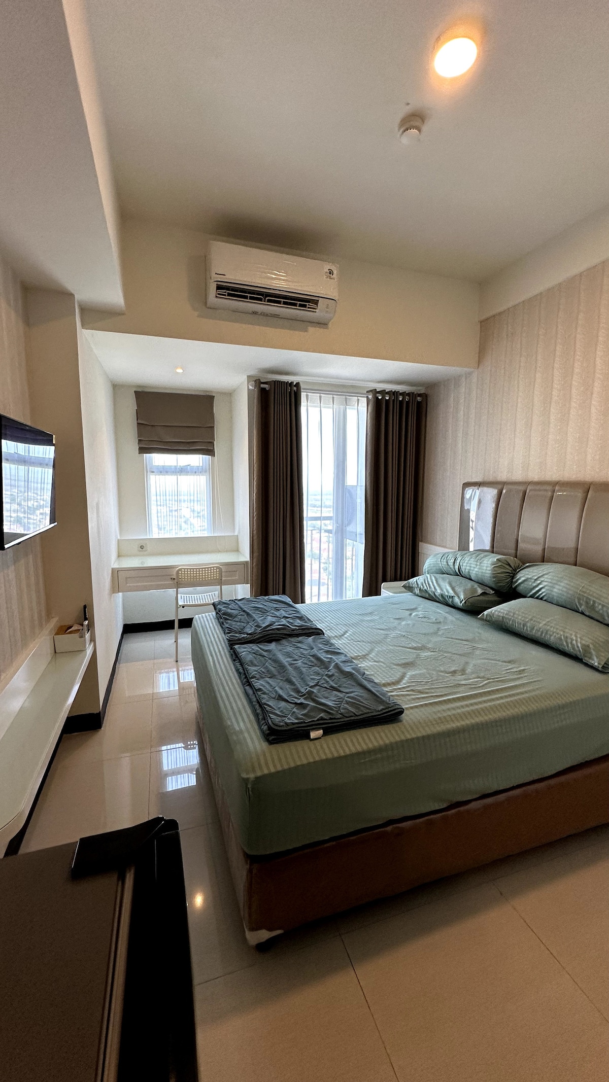 Apartament confortabil la etaj înalt în Anderson, deasupra mall-ului Pakuwon. Locație premium în West Surabaya cu elemente esențiale: mâncare stradală locală, farmacie, supermarket, cinematograf, spital și îngrijire personală. Renovat recent. Gazdă prietenoasă, receptivă, care se străduiește și are grijă de confortul tău! Situat la 10 minute de autostradă, la 40-60 de minute de mers cu mașina de Aeroportul Internațional Juanda. O poartă către Bromo, Ijen și Malang. Este o unitate perfectă pentru o oprire în călătoria spre Bali sau o bază pentru a explora Java de Est.