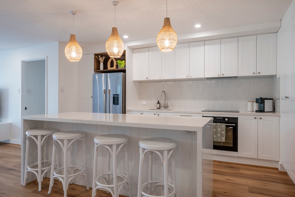 Enjoy this beautiful spacious villa , with a view overlooking private pool , tropical gardens enjoyed day and night. Great space any time of the year. Guests love the alfresco and pool area in the warmer months. Has a gas log fire where you can curl up in front of with a good book or a glass of wine in the winter months. Located opposite park with childrens play ground. Short walk to beach, cafes,shops, bars, parks and public transport.