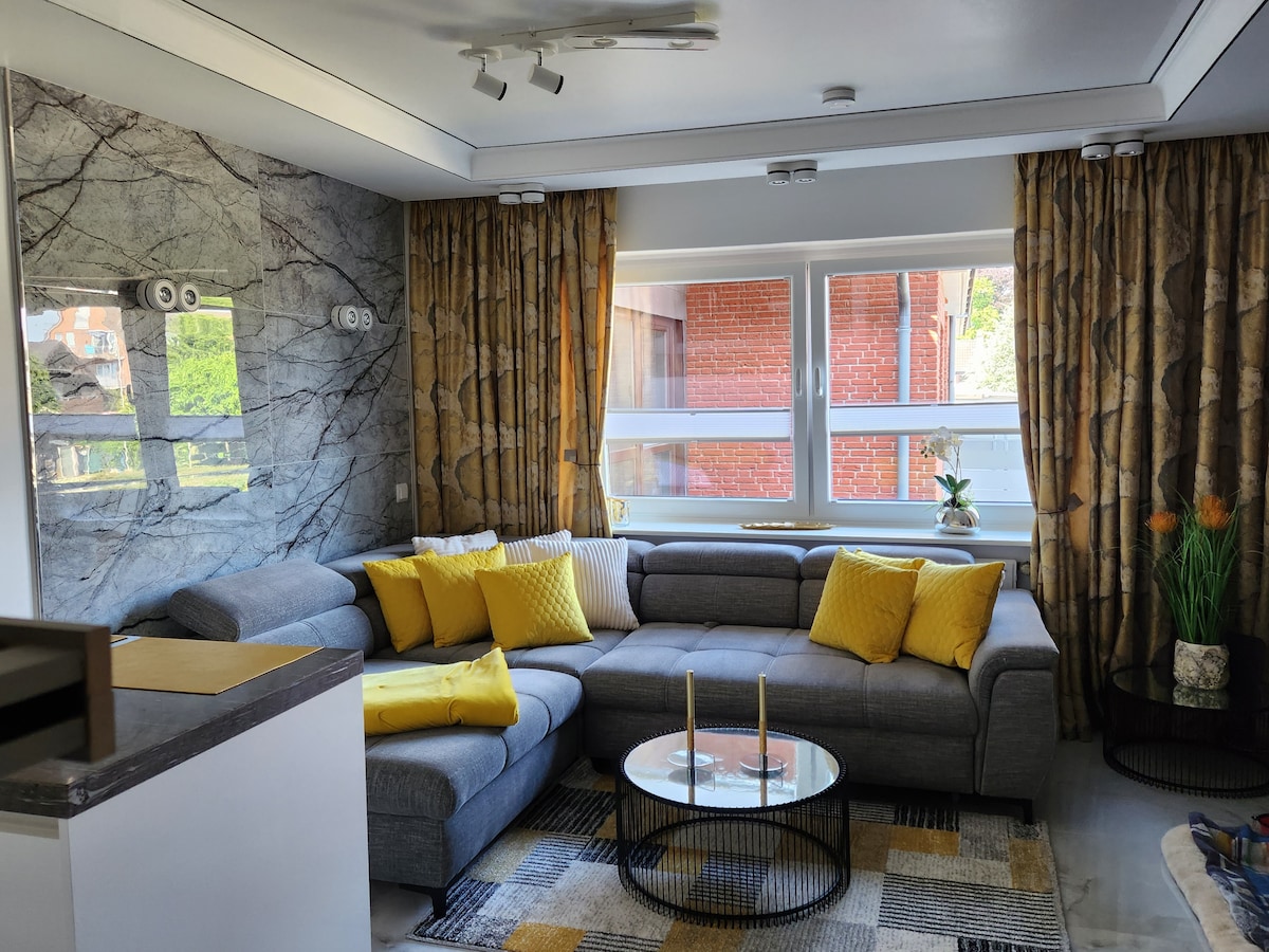 Experimentează relaxarea pură în apartamentul nostru de pe plajă, cu vedere la mare → 2 dormitoare cu pat matrimonial „King” → 50 m de plajă și 5 minute de centrul spa de la Marea Baltică la → câțiva pași de cumpărături/restaurante și cafenele → 5 minute cu mașina până la HANSAPARK → două balcoane cu vedere la mare → Bucătărie cu frigider și congelator, aragaz și cuptor → Cafetieră Nespresso/ceaiuri asortate → Smart TV,Disney+șiWi-Fi Mașină de→ spălat vase și mașină de spălat rufe în apartamentul comun