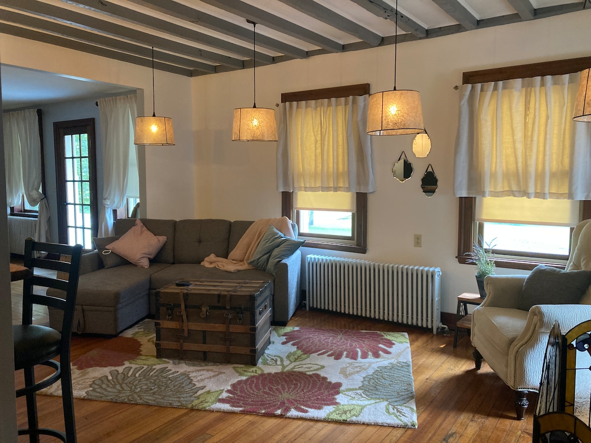 Experimentează farmecul istoric și luxul modern! Bine ai venit la o casă școlară complet renovată din anii 1840, unde istoria întâlnește luxul. Această escapadă fermecătoare oferă: Pat matrimonial Nectar Premier de lux, care asigură un somn odihnitor. Șemineu confortabil cu propan pentru a-ți încălzi serile. Cadă cu hidromasaj privată pentru relaxare maximă. Bucătărie completă echipată cu toate dotările esențiale pentru nevoile tale culinare. Sistem de sterilizare continuă a aerului și a suprafeței CASPR, asigurând un mediu de aer curat.