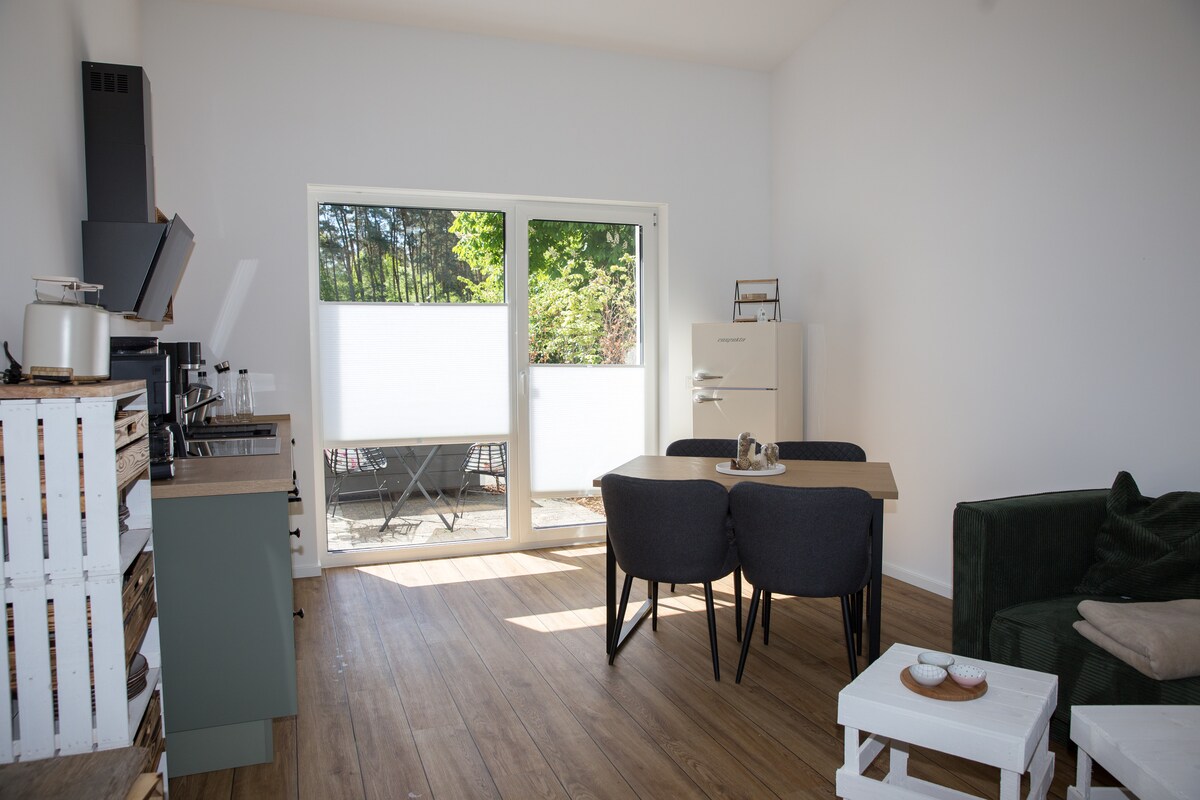 Modern 47mp apartament de vacanţă este situat ca un apartament detaşat cu intrare separată în Oerlinghausen lângă aerodrom de navigatie frumos situat pe versantul sudic al pădurii Teutoburg. Apartamentul este un apartament cu o cameră cu chicinetă, pat dublu și canapea extensibilă. Lângă Bielefeld, între Sennelandschaft şi Teutoburger Wald. Facilitățile includ 2 biciclete gratuite.