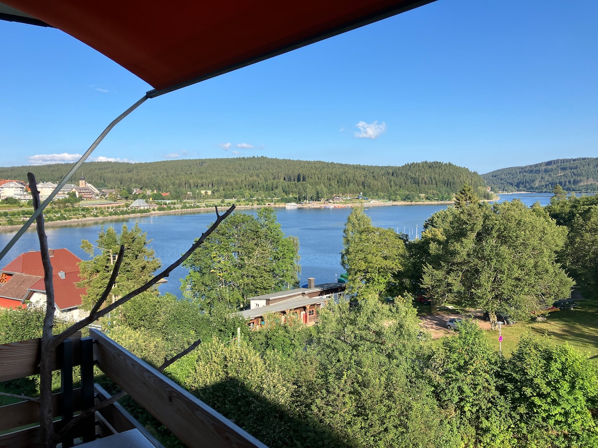 Apartament confortabil (aprox. 70 mp) cu o priveliște minunată asupra Schluchsee. Singura problemă este că priveliștea minunată de la masa de mic dejun te împiedică uneori să pornești și să explorezi împrejurimile minunate. Extensibil la cerere prin rezervarea studioului învecinat „Auszeit”. Plaja/malul lacului sunt la câțiva pași. Vara, oaspeții au la dispoziție o canoe pentru 2-3 persoane. La piața Edeka, gară și centrul orașului se poate ajunge pe jos în câteva minute.