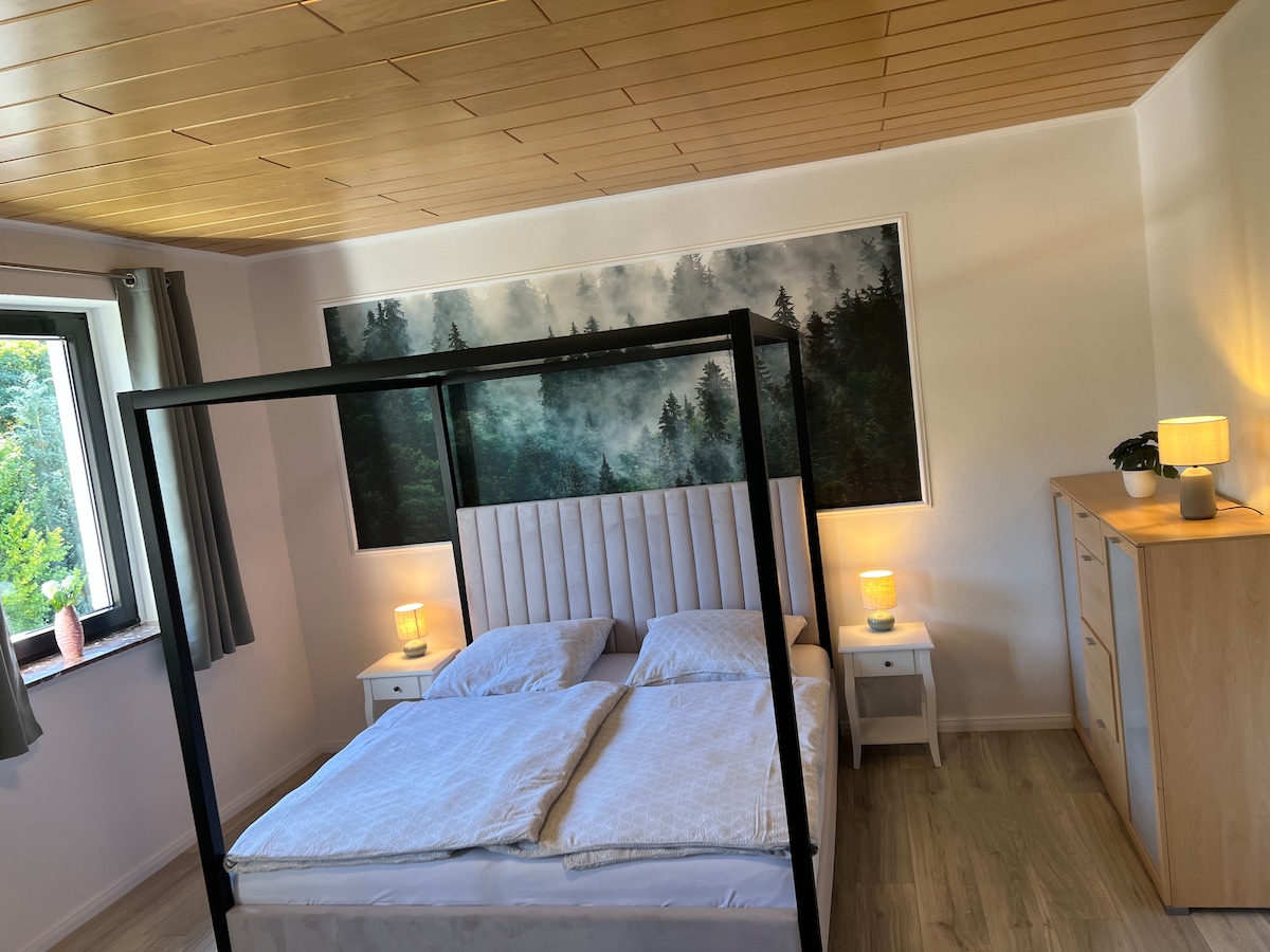 Relaxează-te în locul nostru special și liniștit! Apartamentul nou mobilat pentru până la 4 persoane cu aproximativ 60 de metri pătrați este răspândit pe două etaje. Pentru a sublinia sunt o bucătărie complet utilată, TV, canapea extensibilă, ferestre panoramice mari, un pat confortabil cu arcuri, terasa privată cu scaune în aer liber, precum și o parcare suficientă pentru clienți. Fereastra panoramică a casei de vacanță este orientată spre răsărit și pădure. Așteptăm cu nerăbdare să te revedem în curând!