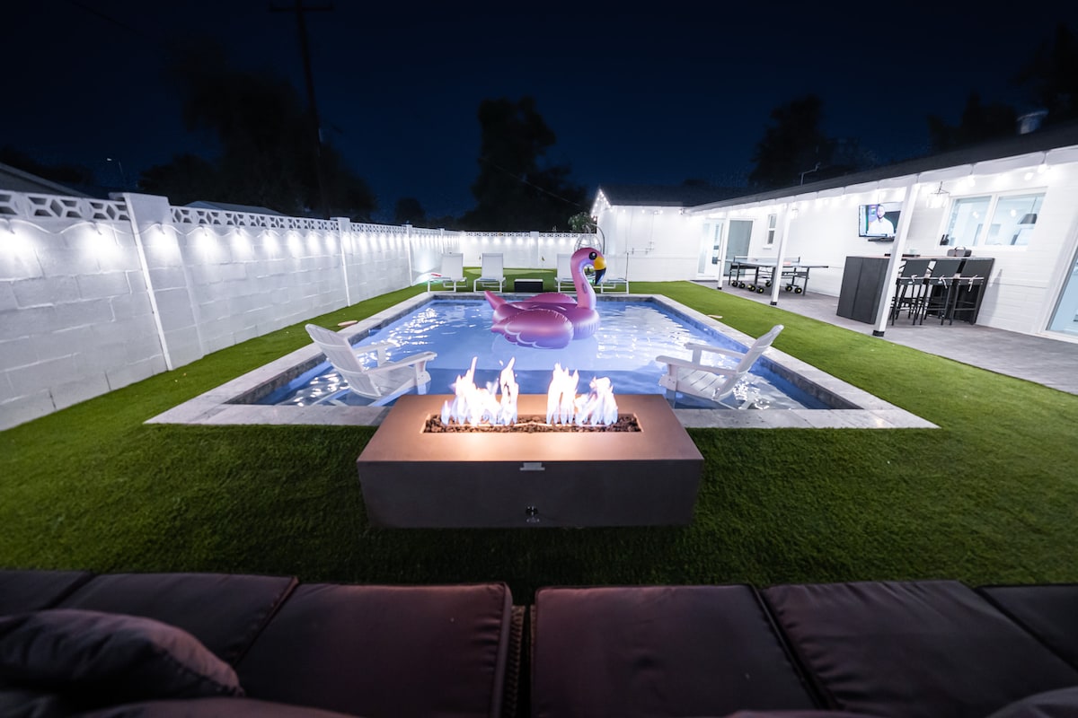 7 paturi superbe, 4,5 băi care doarme 16 persoane într-un cartier liniștit din inima zonei Scottsdale, aproape de restaurante, viață de noapte, drumeții, terenuri de golf și spa-uri, perfect pentru familii, cupluri sau excursii cu băieți/fete. Celebrity Greens pune verde, piscină încălzită, patio greșit și groapă de foc. Bucătărie modernizată, sală de gimnastică și sală de jocuri cu bar umed, biliard, pinball, Golden Tee și ping pong. O casita remodelată cu 3 paturi și 2 băi este ideală pentru intimitate și grupuri multifamiliale. NUNȚILE ȘI EVENIMENTELE SIMILARE SUNT STRICT INTERZISE.