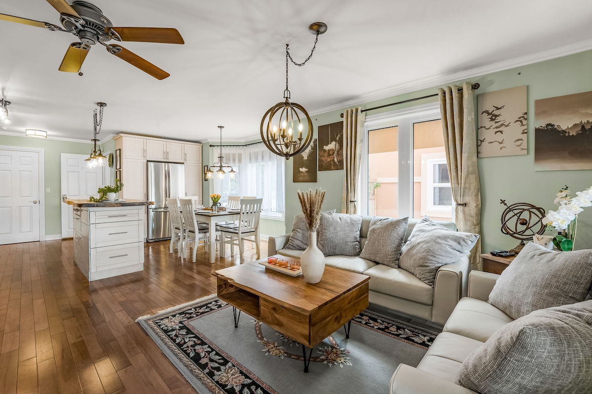 Apartament privat minunat. Intrarea fără cheie în apartament este pe scara originală a locuinței de la ușa din față. Un dormitor are un pat matrimonial și un singur pătuț. Baia este actualizată cu o cadă mare cu duș. Bucătăria are electrocasnice din oțel inoxidabil și este complet aprovizionată cu cafetieră Keurig, ceainic, oale și tigăi. Televizorul inteligent conține Netflix , Crave pe care te poți conecta în dormitor, iar televizorul din living are Shaw Direct și Apple TV .