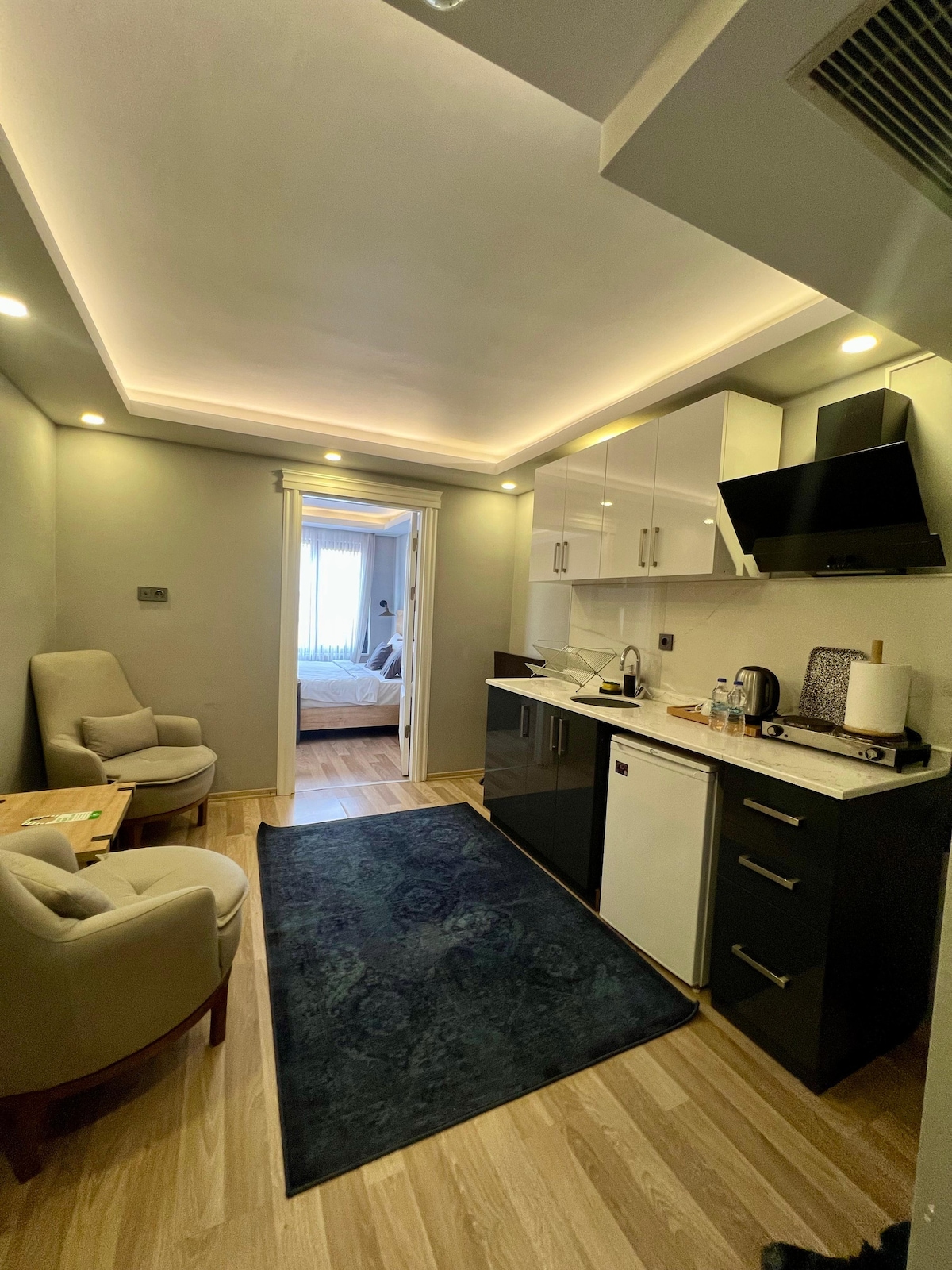 Această suită are o chicinetă privată și o baie modernă cu jacuzzi, suita are ferestre destul de spațioase, un aspect spațios și convenabil, există un serviciu de curățenie la fiecare 3 zile, puteți ajunge în locurile istorice din clădirea noastră într-o plimbare de 10 minute și puteți vizita locurile istorice ale orașului vechi și magazin. Marele Bazar,Hagia Sophia. Moscheea Sultanahmet. Bazilica Cisternă, Palatul Topkapi sunt unele dintre ele. Stația de tramvai este la aproximativ 7-8 minute de mers pe jos.