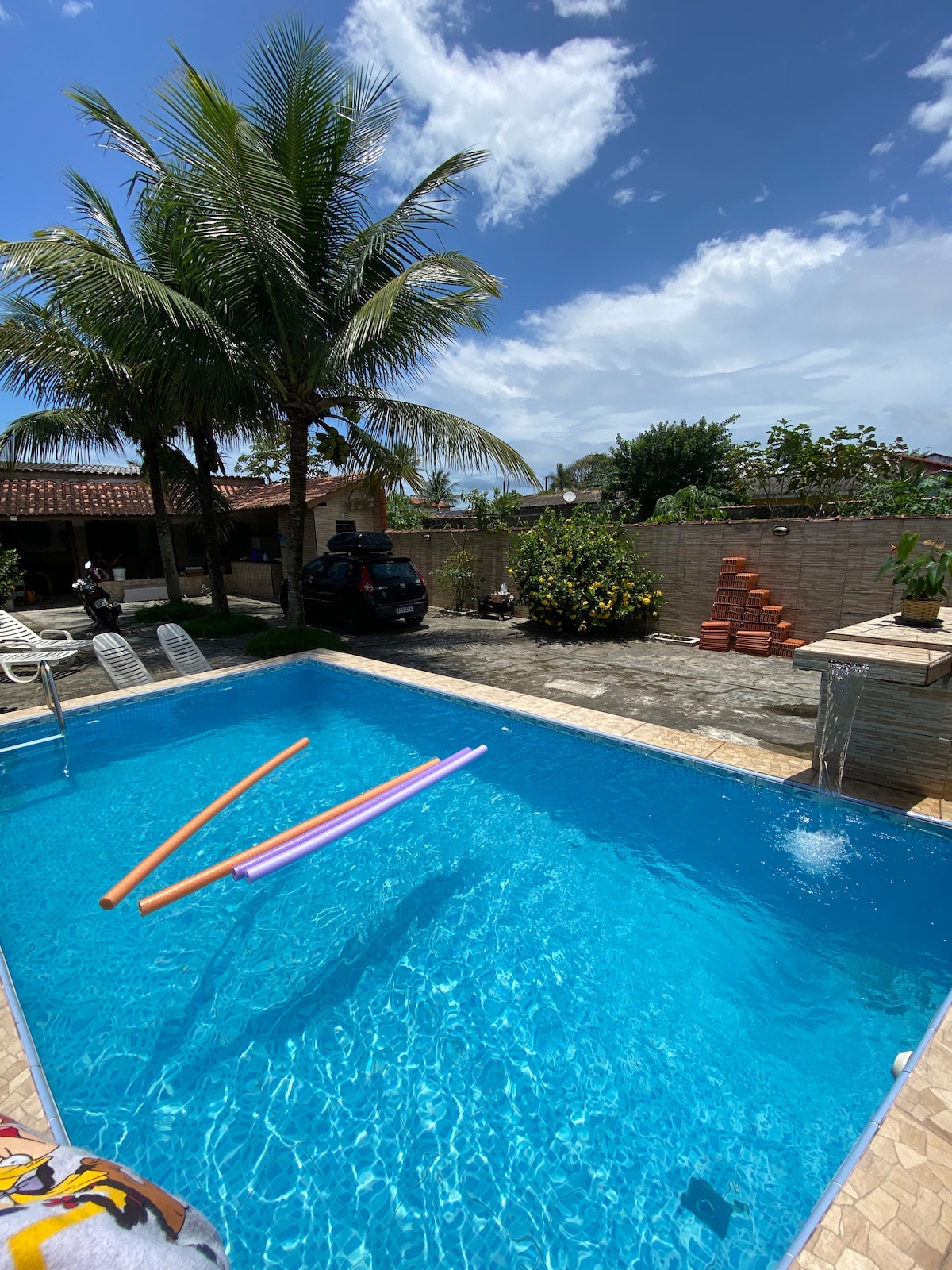Peruibe cu piscină, grătar, plajă în față