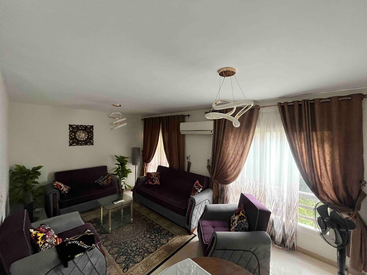 Un APARTAMENT ÎNTREG cu grădină în spate, situat într-o zonă frumoasă și verde, într-o comunitate integrată pașnic, care îndeplinește toate nevoile locuitorilor. Camerele sunt recent mobilate, dotate cu aer condiționat, Smart TV și toate dotările de care ai putea avea nevoie, super CURATE și LINIȘTITE. Apartamentul se află la 25 de minute de Aeroportul Internațional Cairo. Cafenelele, restaurantele, supermarketurile și farmaciile sunt toate în apropiere. Calitatea standard a hotelului, cu confort ca locuință, oferită la un PREȚ REZONABIL.