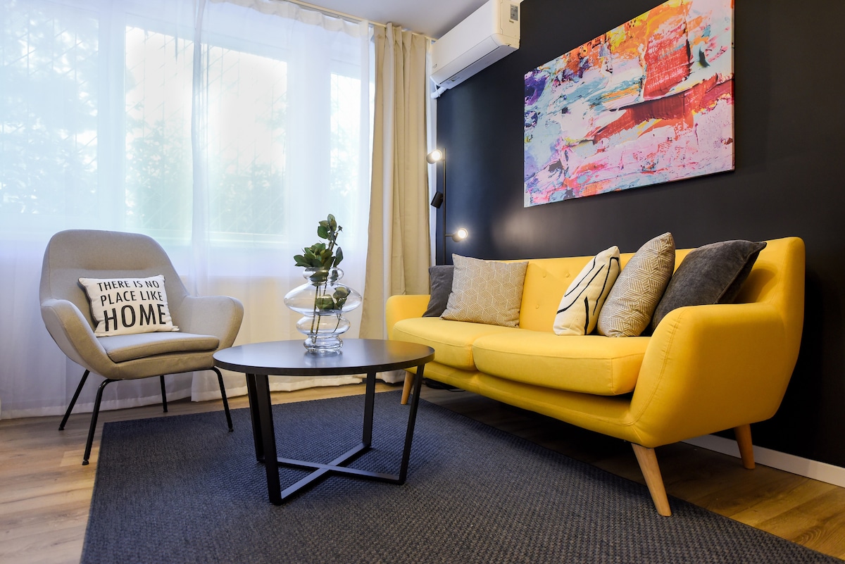 Galben și distractiv! Șederea ta perfectă tocmai a început :) Alege acest apartament dacă ai nevoie de un spațiu drăguț, foarte bine conectat la centrul orașului, fiind în același timp departe de toată agitația și zgomotul. Locuința te va surprinde cu un design clasic, combinat cu stropi de galben, care oferă bună dispoziție și energie. Nu te vei plictisi niciodată în această casă și te vei simți fericit chiar și într-o zi ploioasă:) Spațiul este modern echipat cu dotări de înaltă tehnologie care îți vor face șederea mai mult decât confortabilă.