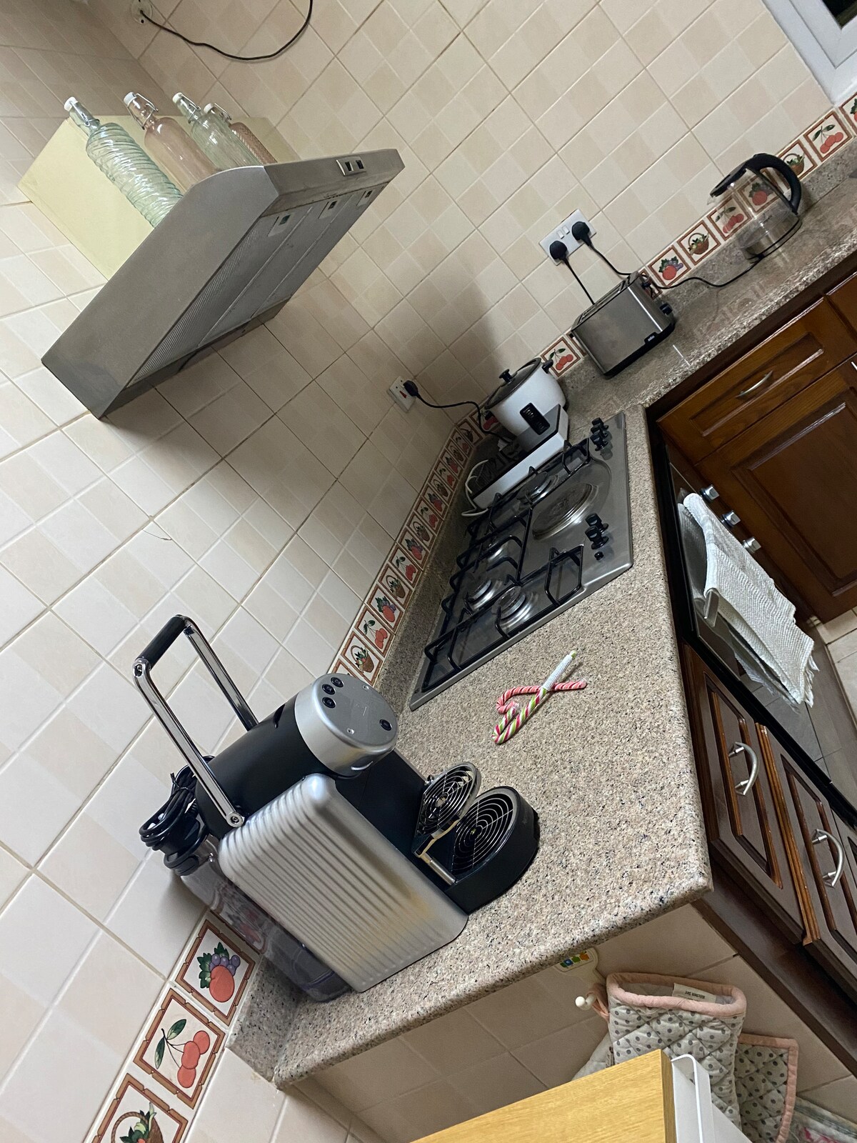 Vei sta în vechiul Oman autentic, în pitorescul său oraș-port, Muttrah (Mattrah), cu fermecătoarea sa medina și cu golful distinct cu semilună pitorească. Această zonă are locuințe joase, spălate în alb și este bogată în farmec, istorie, cumpărături și aromă locală autentică. Apartamentul luminos și aerisit este situat pe terasa noastră de pe acoperiș, oferindu-ți priveliști cu adevărat uimitoare. Este la doar câteva minute de mers pe jos de elegantul port Corniche, o zonă cu o gamă largă de atracții, restaurante, cafenele și faimosul soukh.