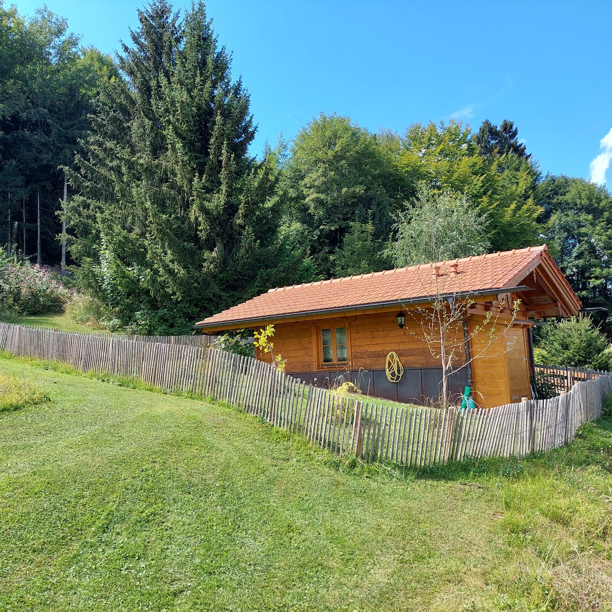 Confortabil masina de constructii să se simtă bine, în grădină cu pere și meri și cu două alergători. Idilic în toate anotimpurile. La lac ieșiți pe poarta grădinii, peste drum și încă 150 m..., apoi vă aflați la lacul de înot, faceți un tur în jurul lacului 1,5 km. Autosuficient în mașina de construcții. O bucătărie self-catering și o baie separată sunt situate în anexă, cu uz propriu (nu în clădirea rezidențială a familiei). Noi (Gesa și Christoph cu cei doi copii ai noștri) locuim în casa de pe aceeași proprietate.