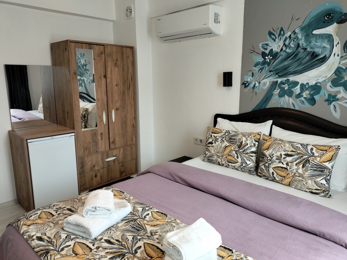 Bu büyüleyici ve lüks konaklama yerinde her ayrıntı düşünülmüştür. Konforunuz için kalite ön planda tutularak her odamız şık bir tasarımla döşendi. Hijyen ve temizlik kurallarına titizliklikle uyarak misafirlerimizin sağlığını önemsiyoruz. Tüm banyo ve bakım ürünleri kişiye özeldir. Minibarımız mevcuttur. Odalarda Çay-kahve makinesinden, okuma kitaplarına hatta tırnak törpüsüne varıncaya kadar her türlü ihtiyacınız bulunmaktadır. Pansiyonumuzun önünde de minik bir cafemiz vardır. Bekliyoruzzz 🤗