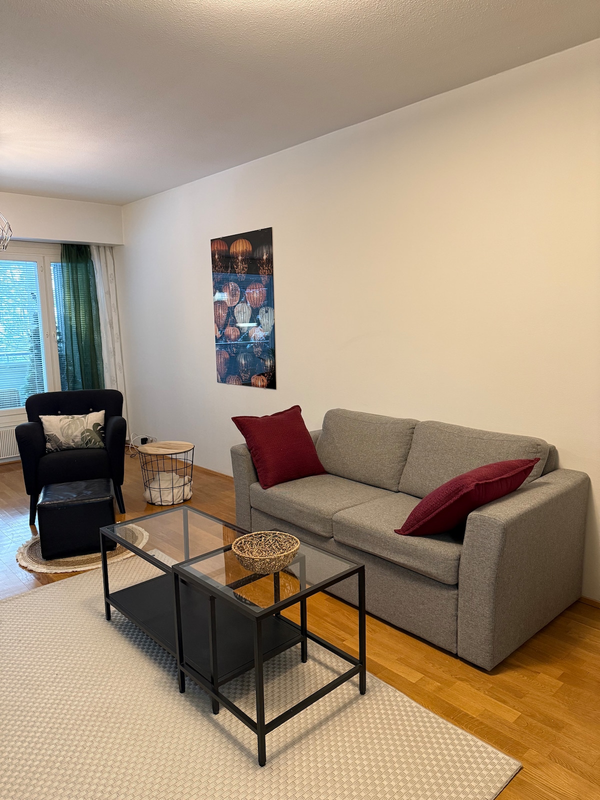 Clădire de apartamente garsonieră 32 m² + saună (gata, 2015). Balcon vitrat la vest. Lift în casă. Loc de parcare pentru mașină în curte. Sunt posibile șederi mai lungi. Sunetele vehiculelor de urgență care trec pe lângă tine fac parte din apartament. Centru 1,6 km (mers pe jos 15-20 minute) Gară 1,6 km, IdeaPark 3.8 km, K-Citymarket Päivölä 1,6 km, Stadionul OmaSp 3,3 km, Spitalul Central 4,2 km, Provincie 4,2 km