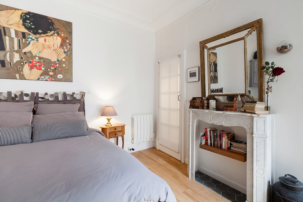 Bine ați venit în apartamentul meu de 50 m2 unde locuiesc și lucrez ca fotograf (fără perii de pictură urât mirositoare!) la etajul 5 cu lift în arondismentul 20, la 50 m de uimitorul parc Belleville. Bucătărie complet echipată, cadă de baie, Wi-Fi. Lăsați scara să vă conducă la accesarea mezaninului confortabil, sub acoperiș, cu un pat dublu foarte confortabil.