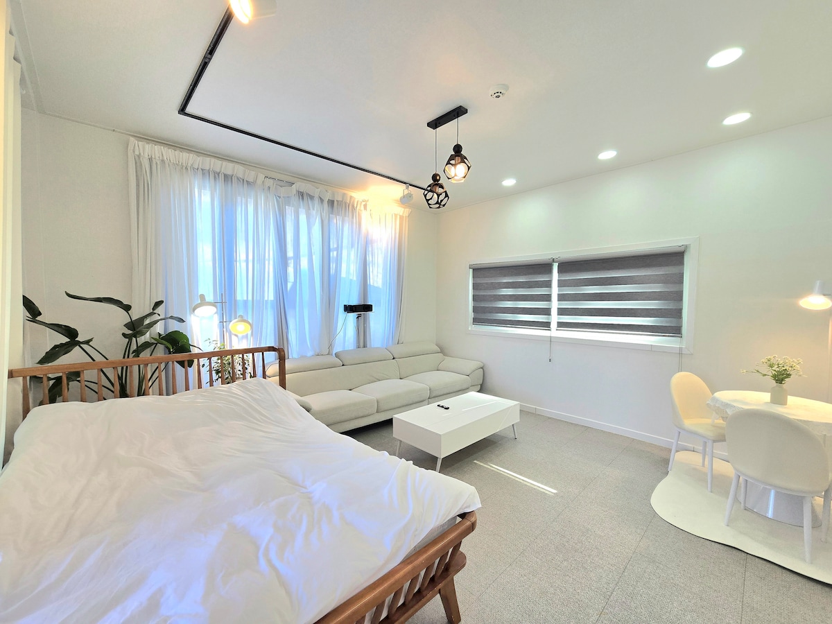 오송에 반하다 : there,오송 *오송의 작은호텔*을 꿈꾸며... 작지만 세심하게 공들인 원룸형 숙소이며, 그저 편안한 공간을 만들고 싶었습니다. 저의 공간을 찾아오는 게스트에게 '잘 왔다'라는 이야기를 듣고 싶습니다. there,오송은 고요하고 평화로운 주택단지 안 작고, 아담한 집에서 탄생했어요. 다양한 색깔의 주택들이 차례차례 줄지어 서 있는 오송의 동네를 경험할 수 있어요. 조용하지만, 오송 어디든 갈 수 있는 좋은 위치에 있어서 게스트님이 편하게 머무르실거라 생각해요. ( ktx오송역, 오스코, 식약처, 오송호수공원 등과 근처 편의점과 음식점, 카페, 빨래방 등) # 청주오송, 세종 출장게스트님 # 청주, 세종 여행게스트님 # 가족, 친구, 연인 또는 혼자^^ there,오송은 안전하며, 편안한, 가족적인 숙소입니다. 기본1-2인, 최대 2인을 위한 숙소입니다. 숙소 컨디션을 위해 입실인원 확인해주세요.