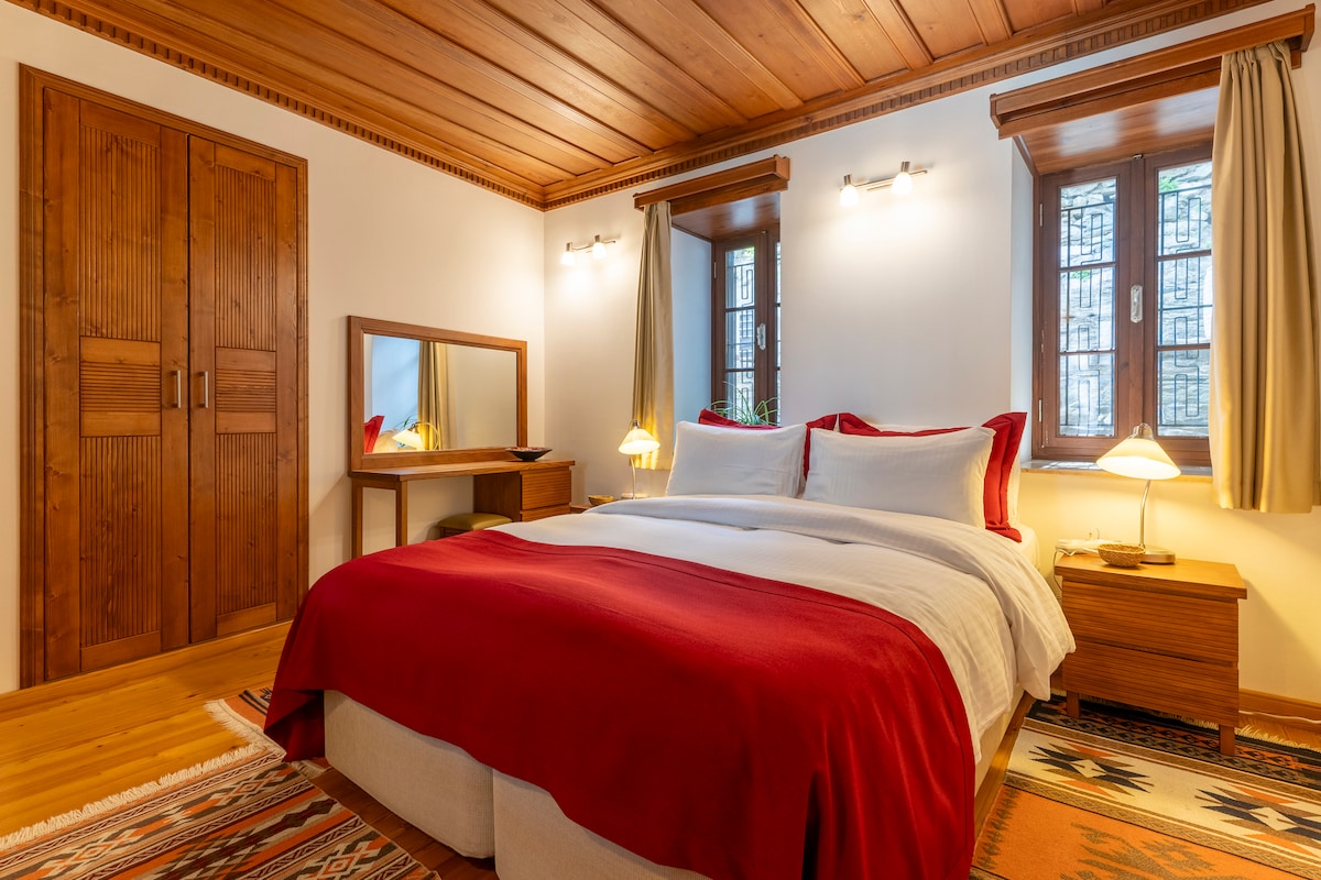 O casă veche de 200 de ani, cu două etaje. Există un living cu perete de piatră la parter. 2 dormitoare duble și un dormitor single este situat la etajul al doilea, împreună cu baia și un hol. Casa are vedere spre faimosul sat Șirince de pe un deal și totuși toate facilitățile satului se află la mică distanță de mers pe jos. U r intrarea în casă printr-o grădină. Puteți la fel de bine să vă bucurați de liniștea grădinii noastre și să beneficiați de cea mai mare parte a băuturilor noastre de casă pe care le servim la cafeneaua noastră