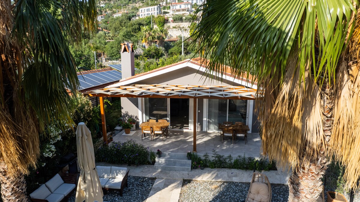 Bu huzurlu konaklama yerinde ailece dinlenebilirsiniz.merkeze ve denize 3 km mesafede doğanın içinde havuzlu taş villa