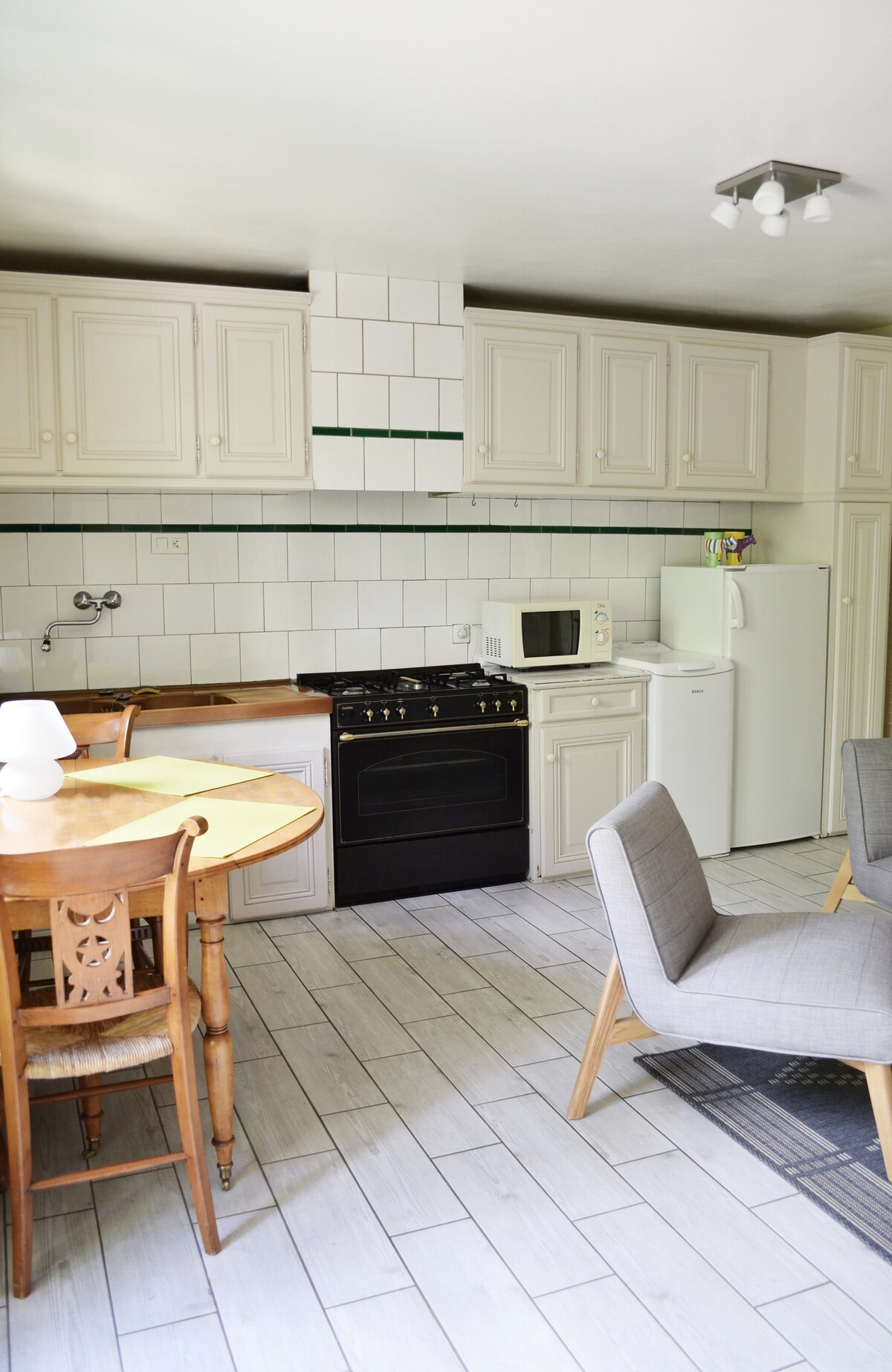 Fermă mică din centrul orașului, al cărei interior tocmai a fost complet renovat, situat pe o stradă foarte liniștită și într-un cartier frumos. Această casă include suficient pentru a parca 2 mașini în față. Poate găzdui 4 adulți în două dormitoare cu un pat în 160 fiecare. Un clic pe canapea în living poate găzdui, de asemenea, 2 persoane, iar un încălzitor confortabil este, de asemenea, la dispoziția ta. Lenjeria de pat și lenjeria de duș sunt incluse în prețul nopții.