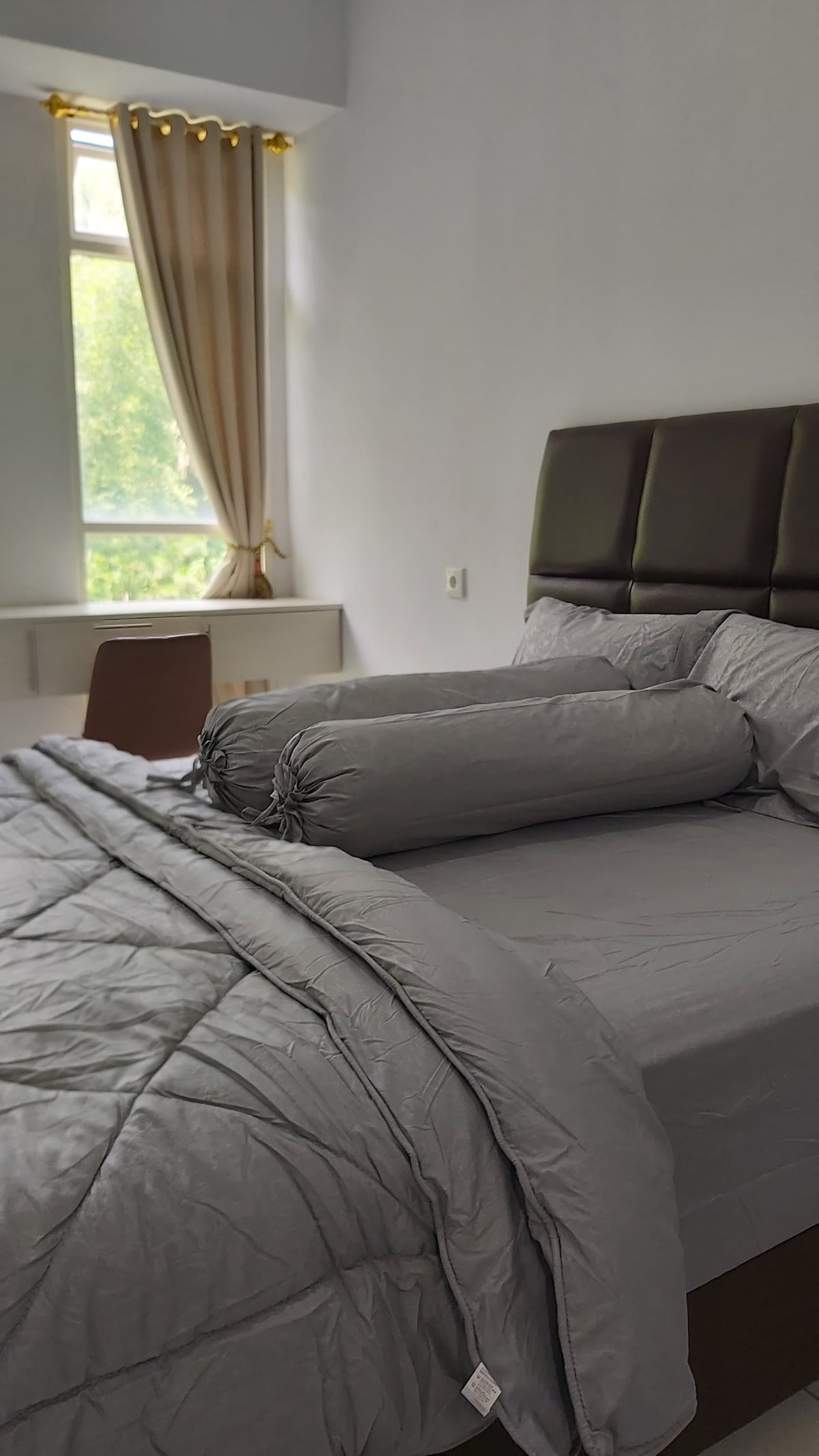 Relaxează-te cu întreaga familie într-un loc liniștit pentru a sta din zgomotul orașului. Apartament cu vedere la oraș și la ocean. Aproape de moschei, spitale, UptownMall, lacul BSB, cafenele, băcănie și mâncare non-stop. Facilitățile camerei: saltea + cuvertură de pat 160x200, fier de călcat, aragaz electric, frigider, tacâmuri, articole de toaletă, shlat, vase de gătit, aer condiționat, Smart TV, boiler electric etc. Facilități: Musholla, piscină, zonă de grătar, parcare spațioasă și gratuită, vedere la pavilion.