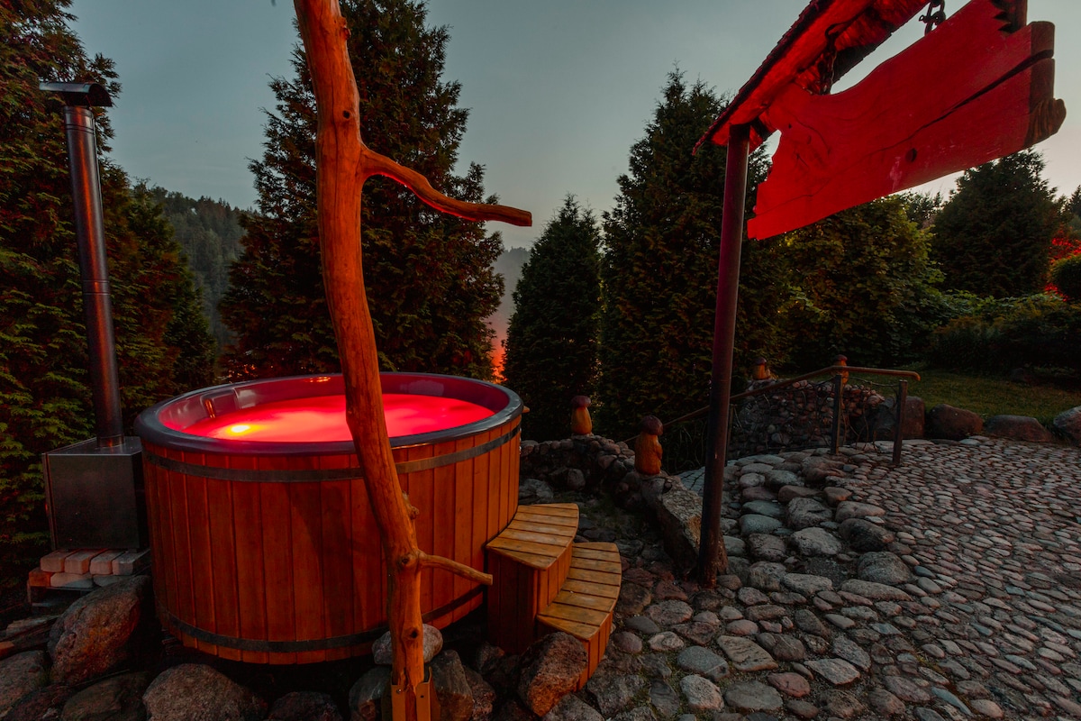 Cadă forestieră „relaxează-te” Este un loc unic chiar lângă Vilnius, unde te poți bucura de o companie iubită, ca o fermă pentru doar doi! Există priveliști uimitoare ale naturii în afara și în afara cabanei, veți putea asculta cântecul păsărilor pe o terasă spațioasă sau barman la sfârșitul serii și vă veți bucura de sauna fierbinte sau de jacuzzi cubanez.