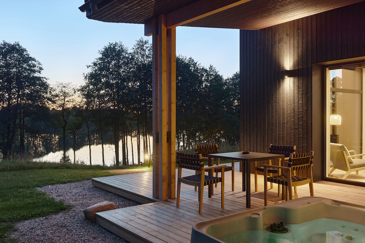 Juoda Truoba | Lakeside House + Free Hot Tub
