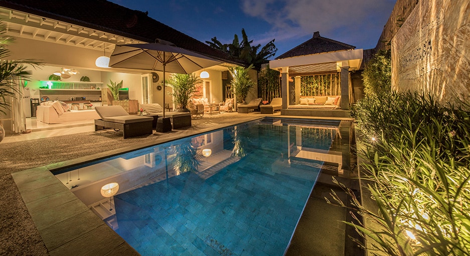 O vilă de lux situată în partea de nord a Legian. La 300 m de mers pe jos de plaja Double Six din Legian, unde vei găsi baruri pe plajă, restaurante și buticuri renumite în toată lumea și la o aruncătură de băț de restaurantele și viața de noapte renumite din Seminyak. Vila cu 4 dormitoare a fost dezvoltată folosind cele mai bune finisaje din Bali, cuplate cu mobilier de lux, pentru a crea o oază tropicală modernă de care oaspeții să se bucure în intimitate.