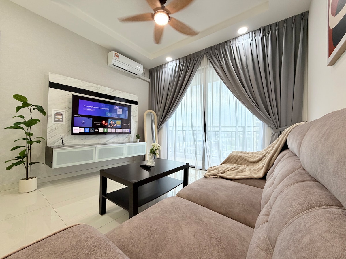 Unitate spațioasă de lux cu 3 dormitoare și cadă! Paturi King & Queen de calitate premium, care garantează un somn bun aici, cu vedere uimitoare la Midvalley Southkey Mall! Evidențiere principală! - Cadă privată -65" Smart TV cu aplicații YouTube și Netflix - Masă de biliard - Consola de jocuri Retro - Dozator de apă potabilă Înconjurat de mall și o gamă largă de mâncăruri locale gustoase - 2 minute de mers cu mașina până la Midvalley Southkey JB - 5 minute până la KSL City Mall - 8 minute până la City Square Mall și Custom JB