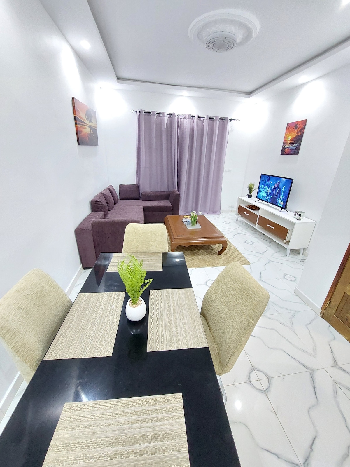 Cazare cu 2 dormitoare, living, 2 băi, bucătărie cu internet prin fibră optică, TV (Netflix, bonus și toate canalele ). Liniștit și elegant situat în cartierul Point E de pe Rue A. Foarte accesibil, supermarket, farmacie, restaurante ...