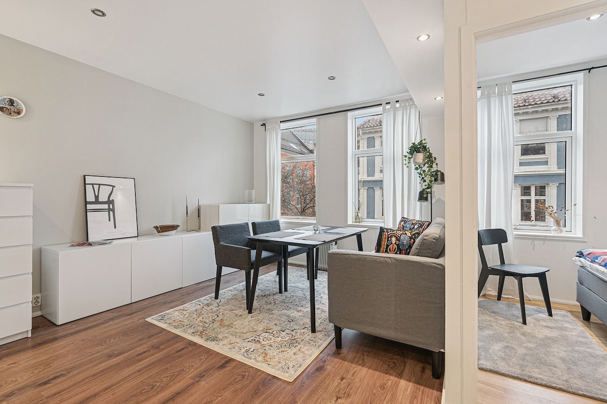 Apartament frumos într-o curte liniștită din centrul orașului. Distanță de mers pe jos până la toate facilitățile din Bergen. Magazin alimentar chiar după colț. Apartamentul este compus din: - Un dormitor cu pat dublu - Baie cu mașină de spălat și uscător - Bucătărie complet utilată - Sufragerie / dormitor - Living cu canapea extensibilă Apartamentul este complet mobilat. Wi-Fi și TV incluse.