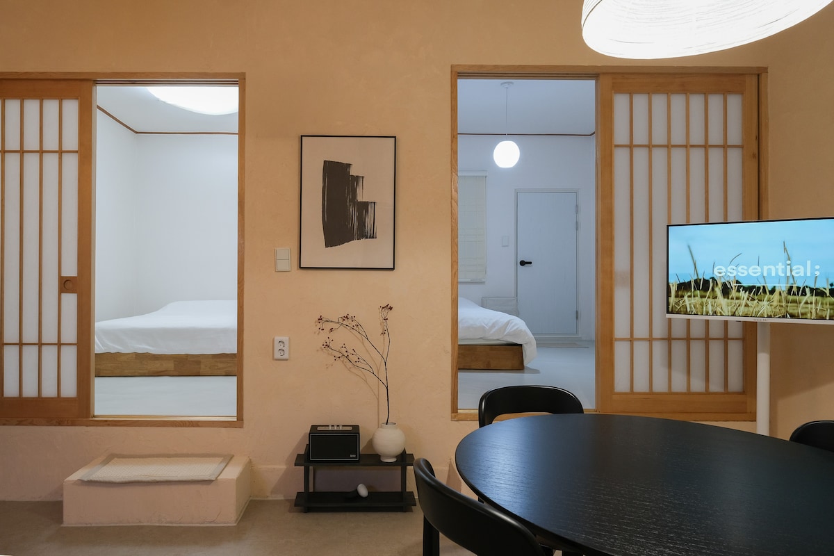1. Număr de persoane/check-in, check-out - Numărul standard de persoane este de 2 persoane/până la 8 persoane, inclusiv bebeluși și copii mici (Verifică numărul de persoane din fața porții, CCTV pentru prevenirea criminalității) - Check-in la ora 15:00/Check-out 11:00 2. Facilități disponibile - Utilizarea gratuită a jacuzzi-ului (30.000 KRW pentru cel puțin o utilizare) - 3 camere/2 băi (baia de la primul etaj este uscată, astfel încât sunt disponibile numai articole de toaletă și toalete. Te rugăm să folosești baia de la etajul al doilea pentru duș) - Smart TV, Beam Project, Netflix disponibil -Amenity (șampon, balsam, gel de duș, curățare cu spumă) 3. Parcare - Este posibilă parcarea pentru o mașină (mică/semi-masă) - Parcare gratuită în apropiere, instrucțiuni de parcare publică 4. Alte măsuri de precauție - Există o cadă cu hidromasaj/scări. Te rugăm să respecți regulile și să le utilizezi. Specifică faptul că oaspeții sunt responsabili pentru incidentele de siguranță. - Gwangan Naewol este nefumător în toate zonele. - Există o cameră de supraveghere instalată pentru verificarea numărului de oaspeți. - Este interzisă filmarea cazării fără consultare prealabilă. Te rugăm să ne contactezi. - Dezinfectarea este temeinică, dar, din cauza naturii casei, pot exista bug-uri. Rambursările din acest motiv nu sunt permise.