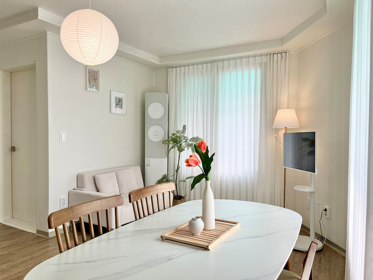 Bună! Acesta este Haruan Stay, care este plin de soare. Vreau să fiu un spațiu cald pentru o clipă într-un oraș străin. - Poți viziona Netflix YouTube prin intermediul smart TV-ului. - Nu lăsăm asta în seama persoanei care face curățenie și păstrăm întotdeauna locuința curată, deoarece gazda se ocupă ea însăși de aceasta. - Este disponibil un loc de parcare pentru o mașină la primul etaj al clădirii, iar dacă nu există loc, vă recomandăm să parcați pe stradă. Crackdown X - Check-in 16:00, Check-out 11:00 (Check-in devreme/check-out târziu costă 10.000 KRW pe oră Dacă aveți nevoie de ea, nu uitați să faceți o rezervare! Te rugăm să ne anunți în avans și te vom ajuta cât de mult posibil. Este un self-check-in fără prezență fizică și poți trimite un mesaj în jurul orei 12:00 în ziua check-in-ului. Informațiile de check-in vor fi trimise - Numărul standard de persoane este disponibil pentru 2 persoane și până la 4 persoane (există o taxă suplimentară (20.000 KRW de persoană) pentru persoane suplimentare, Pentru numărul standard de persoane (2 persoane), te rugăm să reții că se poate utiliza doar una dintre cele două camere, 1 sau 2. (În cazul utilizării unui alt dormitor, se va adăuga o taxă suplimentară pentru lenjerie de pat în valoare de 20.000 KRW.) - Dacă rezervi pentru 3 nopți sau mai mult pentru 2 persoane, poți folosi întreaga cameră.
