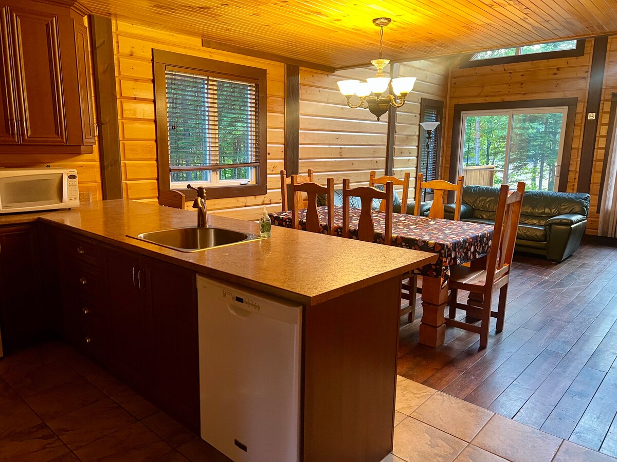 Détendez-vous! Chalet rustique en pleine nature – au pied des pentes de ski. Idéalement situé, ce chalet de 3 chambres offre un accès direct à plusieurs sentiers qui traversent la montagne. Que ce soit pour la randonnée, le vélo de montagne, le quad ou encore la motoneige en hiver, vous pourrez profiter d’activités en plein air tout au long de l’année.