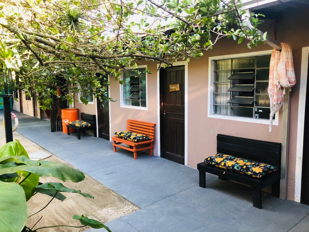 Apartament mic în stil „colibă din lemn”. Camera poate găzdui 2 persoane, cuplu sau nu, deoarece are un pat suplimentar la etaj. Zonă verde, locație excelentă pe plaja Bomas, aproape de municipalitatea Bombinhas, cu un magazin alimentar și o brutărie în colțul casei. Atmosferă de familie. Are o baie privată (îngustă) și o zonă în aer liber cu o bucătărie comună, care poate fi utilizată pentru mese rapide sau pentru prepararea cafelei. Este o brutărie la o stradă de aici