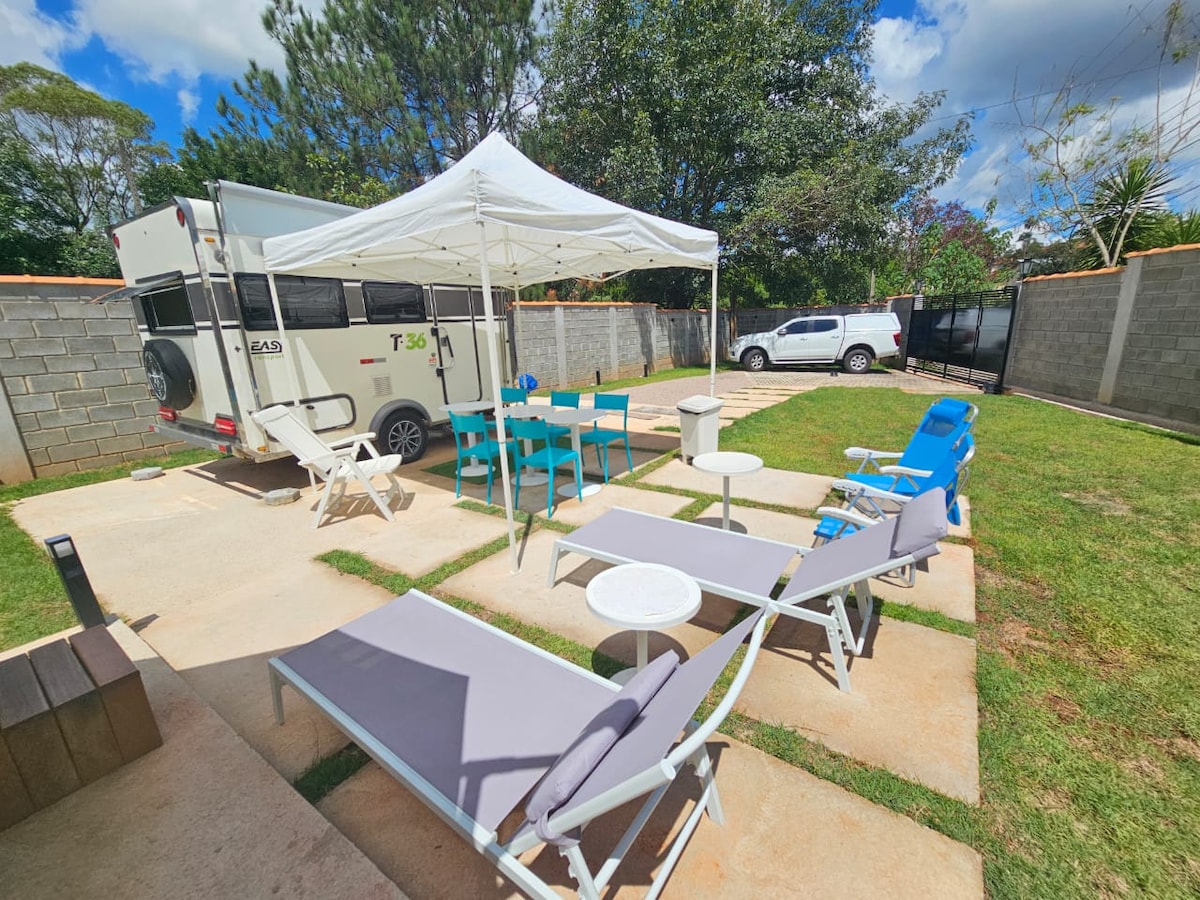 Acomodação dentro de uma chácara de 4.000m, com lago, patos e muita natureza para ver e relaxar. Garagem exclusiva e ruas asfaltada, 2,5km até o centro Disponível geladeira, fogão de indução, forno, roupa de cama e toalhas. Restaurante/pesqueiro e mercadinho perto. Todos os restaurantes da região entregam delivery.