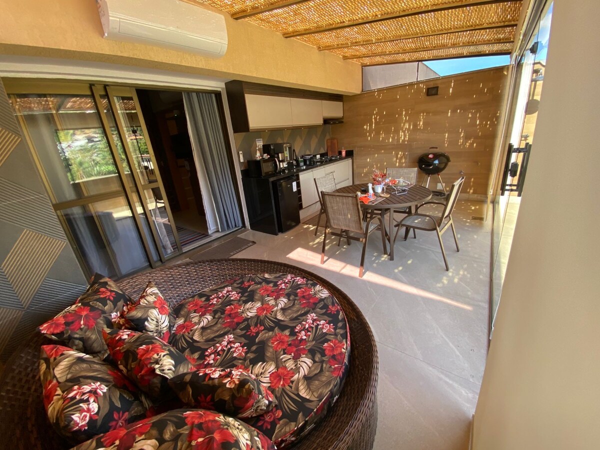 A Cobertura 219C Bloco1 se află în inima Itaipava . Un apartament confortabil cu 1 pat matrimonial, 1 canapea extensibilă dublă. Aer condiționat cald și rece în APARTAMENT și în ZONA GOURMET, Smart TV, uscător de păr,fier de călcat. Oferim lenjerie de pat și de baie,plapumă și pătură. cu minibar,cuptor cu microunde, aparat de făcut friteuză cu aer, aparat de cafea electric, apă filtrată, hotă, veselă, oale, oală de orez, grătar mobil,masă cu 4 scaune. Este la 5 minute de mers pe jos de Parcul Expozițional/ STÂNCĂ MUNTELE.