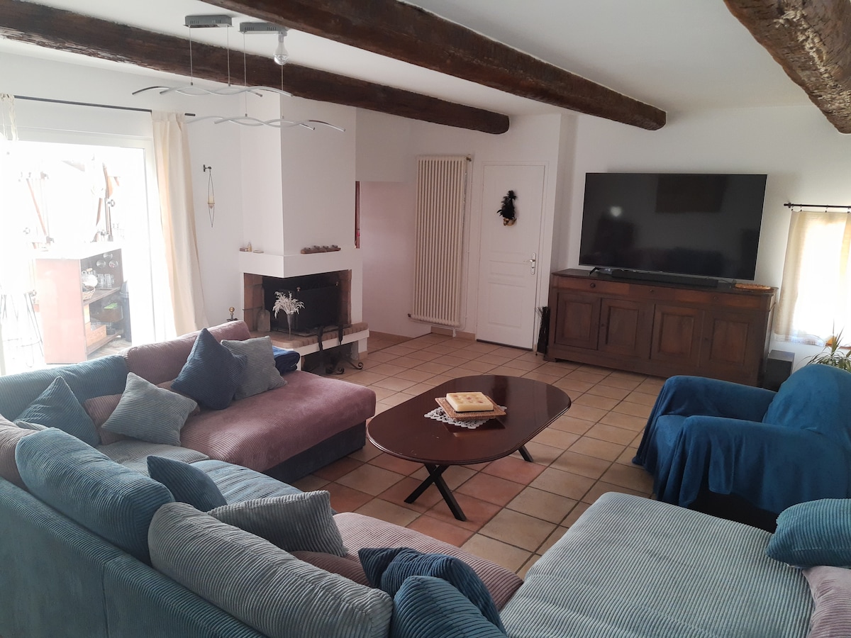 Casă de sat de 80 m2 cu curte în aer liber de 11 m2. La primul etaj este o zonă de living, complet utilată și mobilată. În al doilea rând se află o aterizare cu toaletă și mașină de spălat mâini. Un dormitor mare de 25 m2 cu un pat king și o baie cu duș. Casa se află într-un cul-de-sac în inima satului, la 50 de metri de toate facilitățile (brutărie, magazin alimentar) și locuri de parcare gratuite. Casa se află la 12 km de pezenas și la 25 de minute de plaje (Valras, Vias, Cap d 'agde).