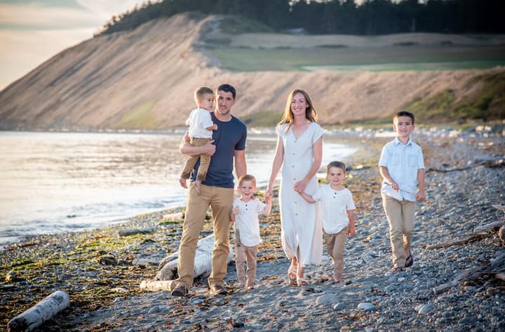 O sesiune de 30 de minute pentru a-ți surprinde călătoria în familie în Pacificul de Nord-Vest. Fotografiile pot fi realizate la locuința ta de închiriat sau într-o locație excelentă din PNW.