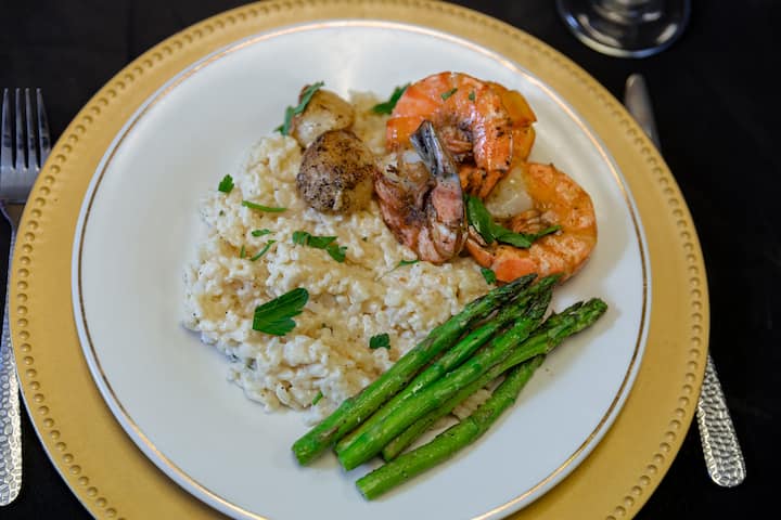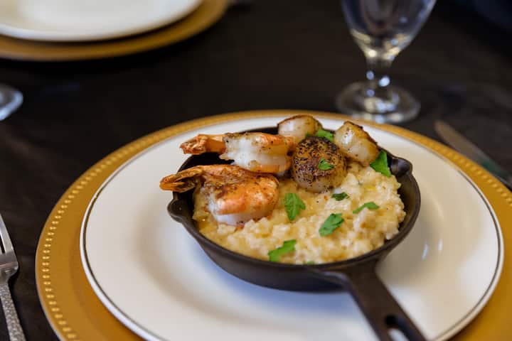 Acest meniu reflectă fructele de mare bogate din abundență servite de-a lungul coastei Golfului