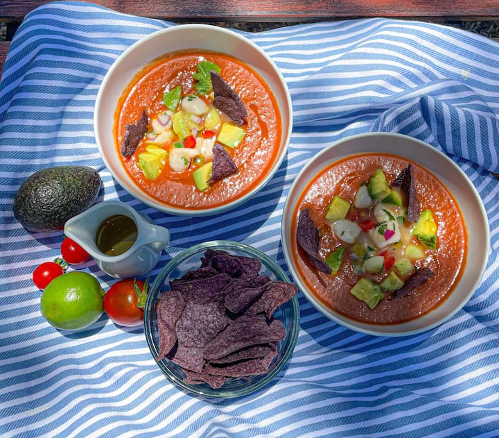 O cină interactivă sau intimă, unde alegi o temă pentru meniul cu patru cursuri (asiatic, mediteranean, latino-american etc.). Exemplu de meniu: arepas, gazpacho, churrasco, mojito possets. Toate meniurile includ sosuri de casă/sosuri/pansamente