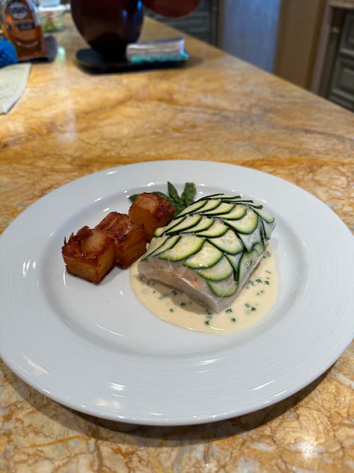 Această cină va include un aperitiv cu scoici, salată de grădină, surf and turf și desert pregătit și servit la tine acasă
