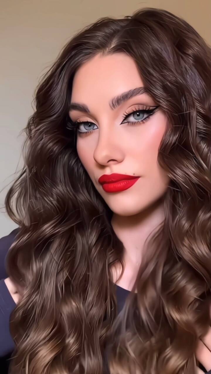 Machiaj de seară plin de farmec, cu piele impecabilă, ochi dramatici, buze definite, contur și gene false opționale pentru nunți și ocazii speciale.