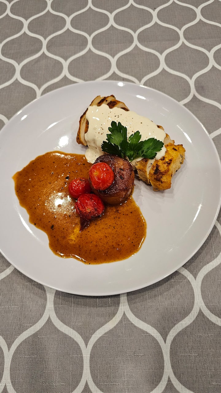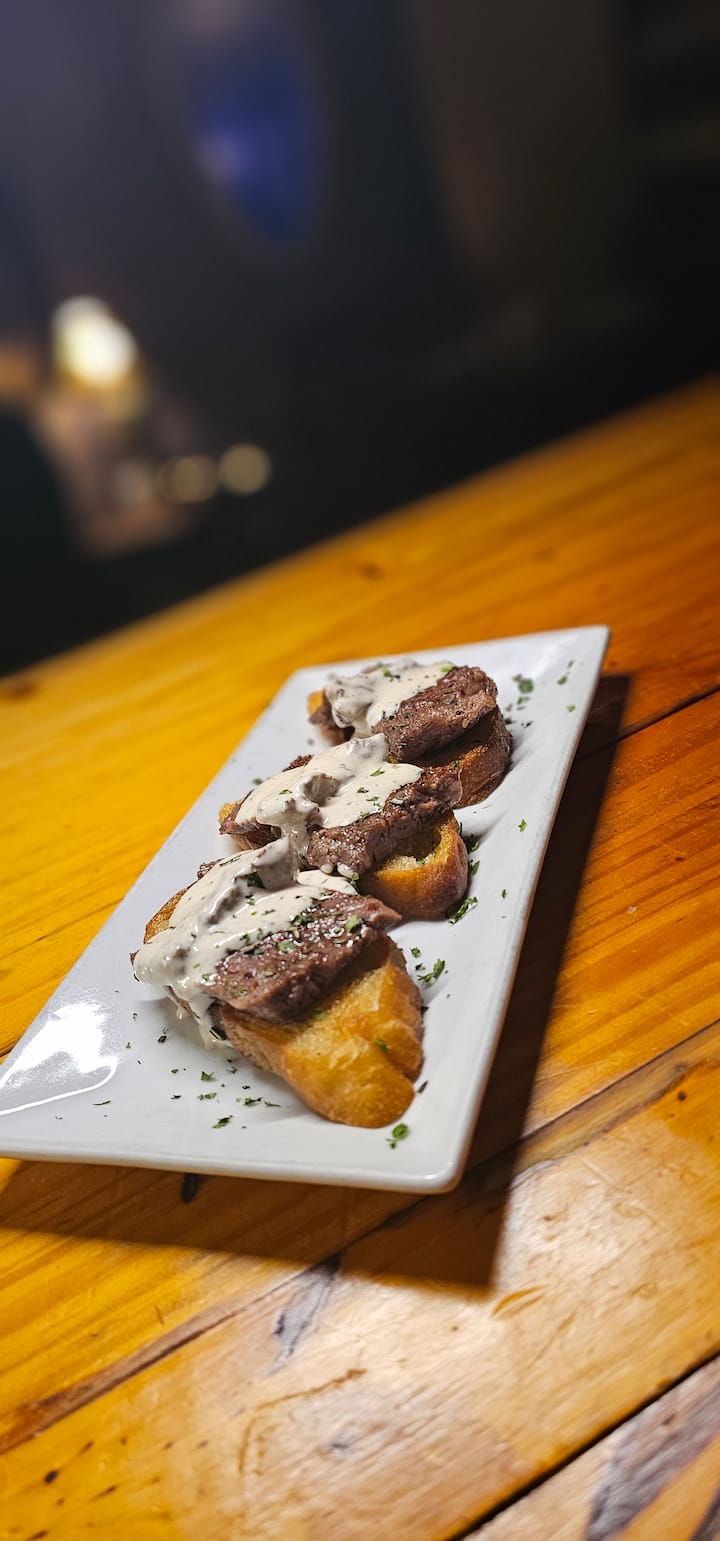 O cină cu trei feluri de mâncare, atent compusă, centrată pe începuturi îndrăznețe și savuroase și finaluri mai ușoare și rafinate. Crostini cu friptură bogată deschide experiența, urmată de un fel principal luminos, cu fructe de mare și un desert curat și elegant pentru a termina.