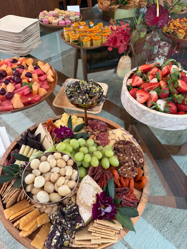 Brânzeturi, mezeluri, fructe locale, crudități, pâine prăjită