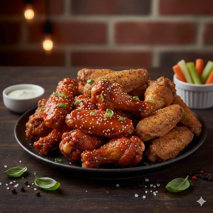 Classic Buffalo > învelit în sos picant de bivol, servit cu sos ranch sau brânză albastră.