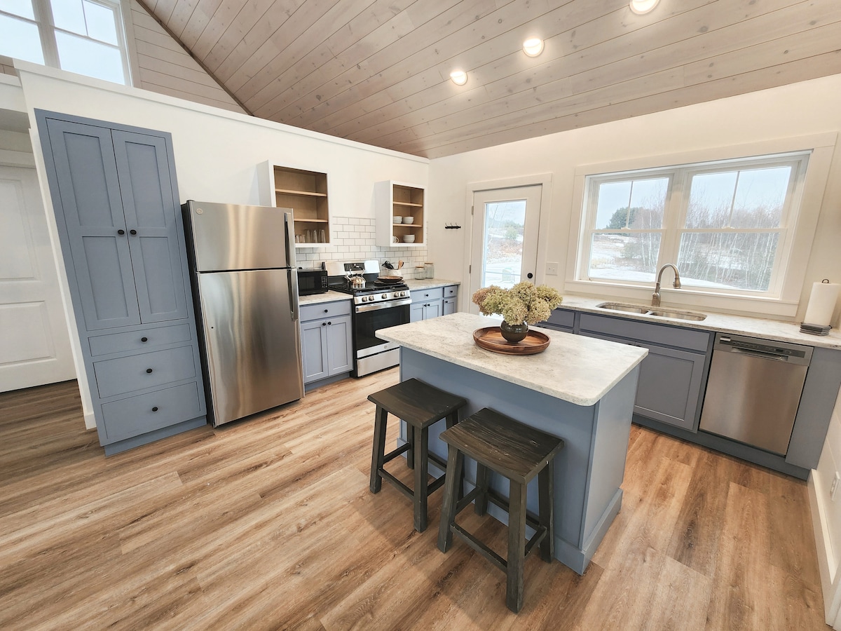 Welcome to your modern coastal escape in the heart of Stonington — one of Maine’s most charming, artistic, and unspoiled working waterfront towns. This beautifully crafted tiny home blends luxury materials with timeless cabin warmth, offering a unique stay just a short walk from downtown shops, galleries, and restaurants. Relax in your private wood-fired sauna, unwind by the firepit, or watch the harbor glow at sunrise through the loft skylights. Perfect for couples, small families, or friends.