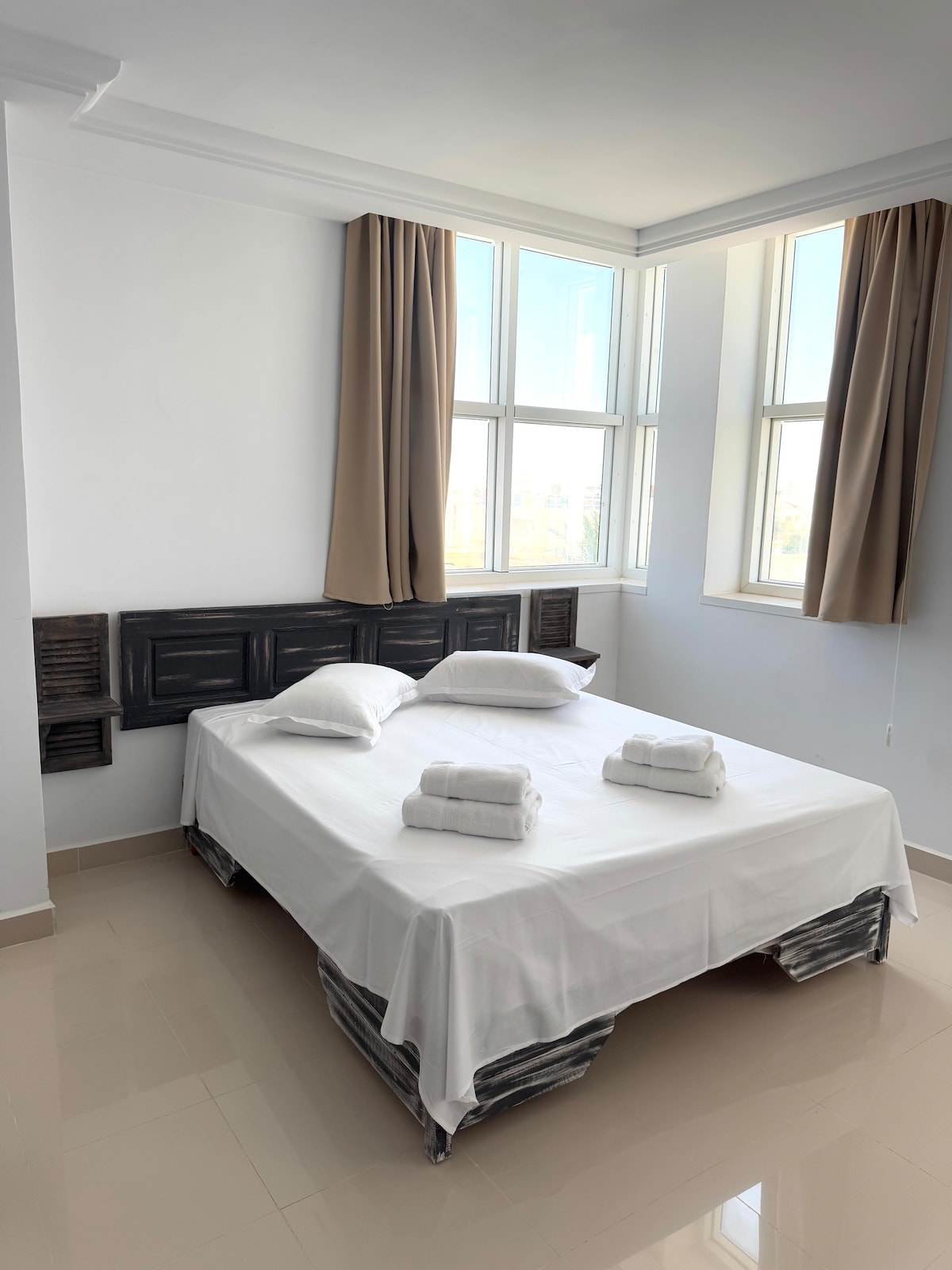 Bucură-te de un apartament elegant și spațios, în inima orașului Sfax, în orașul Ennasria, lângă Sfax Medina. Cazarea este formată dintr-un living spațios, o bucătărie bine utilată, cu uscător privat în aer liber, două dormitoare cu spațiu de depozitare; unul cu un pat dublu și o terasă fermecătoare cu vedere la trecerea de pietoni spre medină, iar celălalt cu două paturi separate și, în cele din urmă, o baie cu cadă, WC și chiuvetă