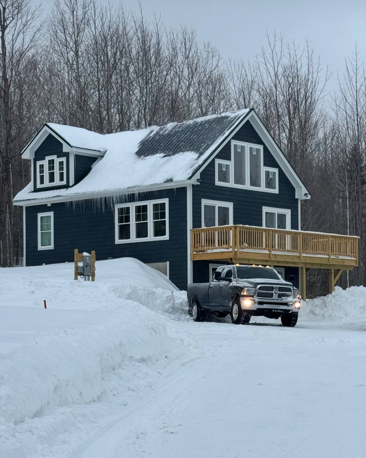 Această casă mai nouă are un spațiu privat 1-BR deasupra garajului, cu intrare privată în spate, cu living, bucătărie completă cu o insulă de 2 persoane, baie mare cu duș dublu și un dormitor mare cu vedere la Sunday River, precum și la Mahoosuc Notch. Perfect pentru o escapadă pentru două persoane, în Munții de Vest ai ME. Excelent pentru sporturi de iarnă la Sunday River sau Mt. Abrams, activități în aer liber sau acces rapid la centrul orașului Bethel. Poate găzdui până la 2 persoane pe lotul nostru de peste 9 hectare. A/4WD obligatoriu în timpul iernii