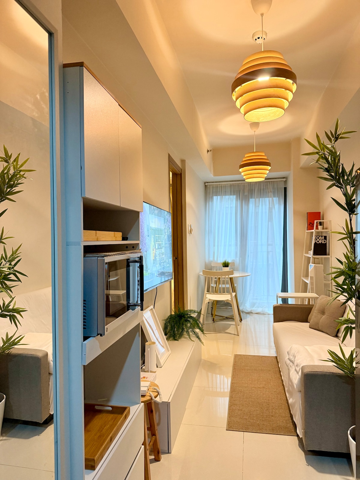 Bine ai venit în unitatea noastră minimalistă cu 1 dormitor, cu o vedere uimitoare la piscină. Relaxează-te în zona de living aerisită cu televizorul nostru inteligent, gătește-ți mesele în bucătăria noastră complet echipată pentru a lua masa sau pur și simplu pentru a te bucura de momente cu vedere la balcon. Dar, cel mai important, dormi liniștit în paturile noastre confortabile. Situat la câțiva pași de Ikea, Centrul de Convenții SMX, MOA Arena și cele care înconjoară zona Mall of Asia. Răsfață-te cu restaurantele, cafenelele și magazinele convenabile din apropiere, chiar lângă apartament.